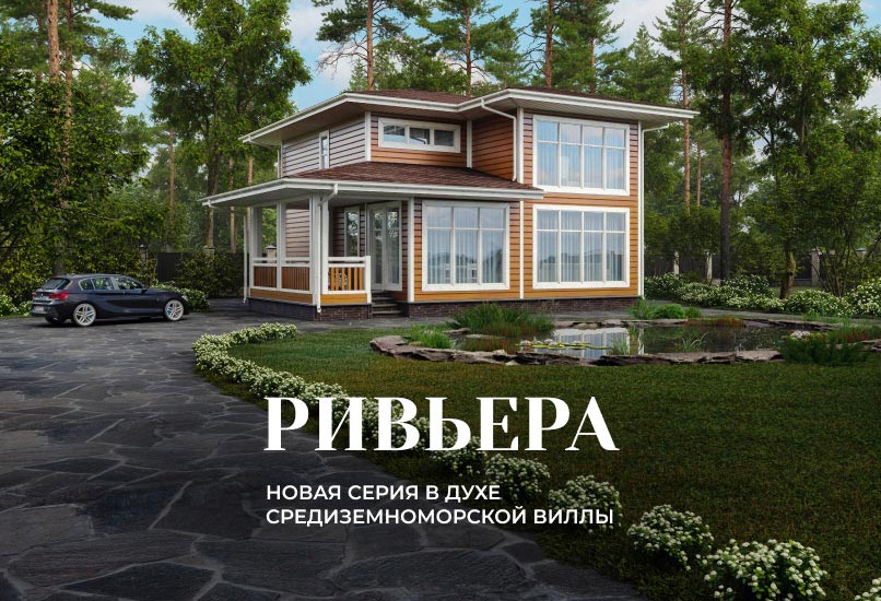 Двухэтажные коттеджи «Ривьера» сочетают в себе лёгкий средиземноморский стиль и практичные европейские планировки. Главный фасад оформлен панорамным остеклением. В каждом проекте серии «Ривьера» предусмотрены два входа и тенистая терраса.