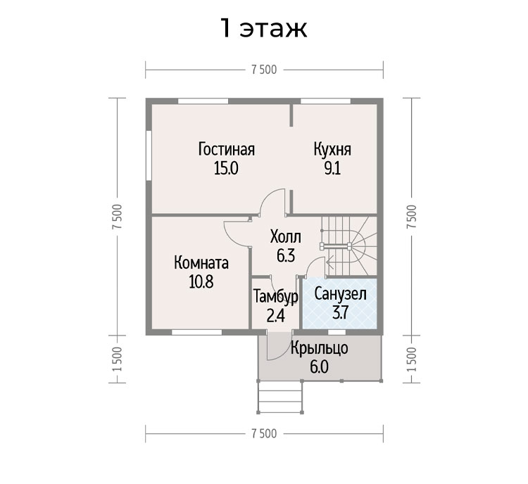 Лестница:двухмаршевая, поворотная с забежными ступенями