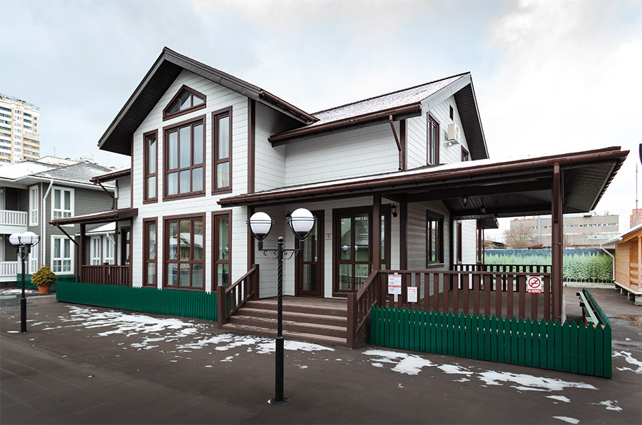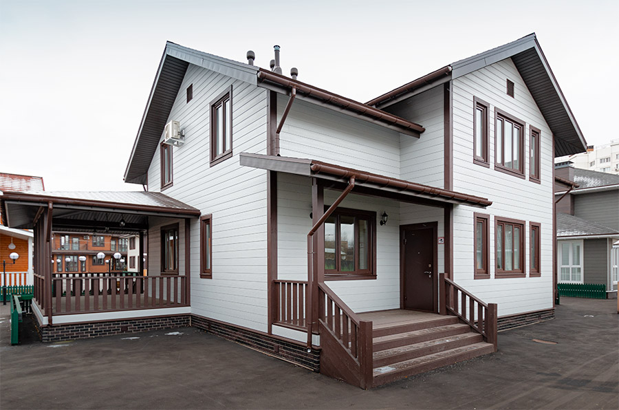 Отделка стен сайдингом, кровля из металлочерепицы и отделка цоколя придадут дому привлекательный внешний вид.