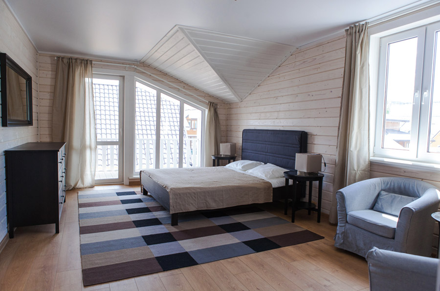 Утепление пола, стен и потолка под кровлей 200 мм, окна с двойным стеклопакетом (3 стекла) позволяют создать комфортную температуру в любые морозы с минимальным расходом энергии.