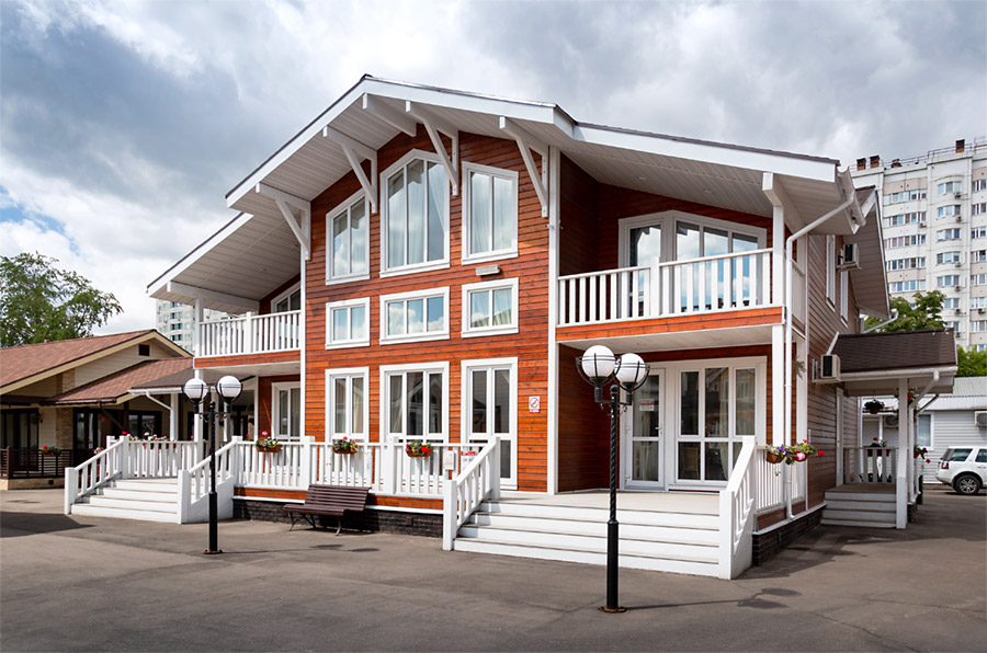 Отделка стен сайдингом, кровля из металлочерепицы и отделка цоколя придадут дому привлекательный внешний вид.