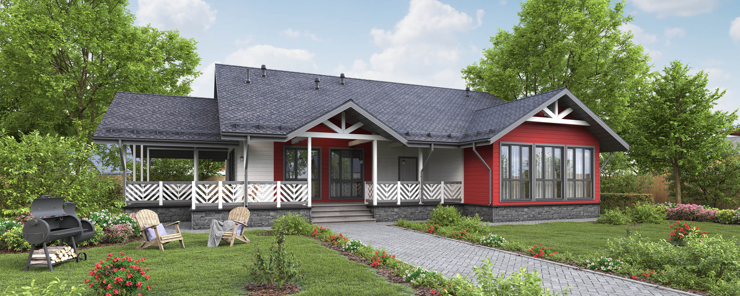 Особенность серии: панорамные окна. Доступна пристройка террасы площадью до 30 м.