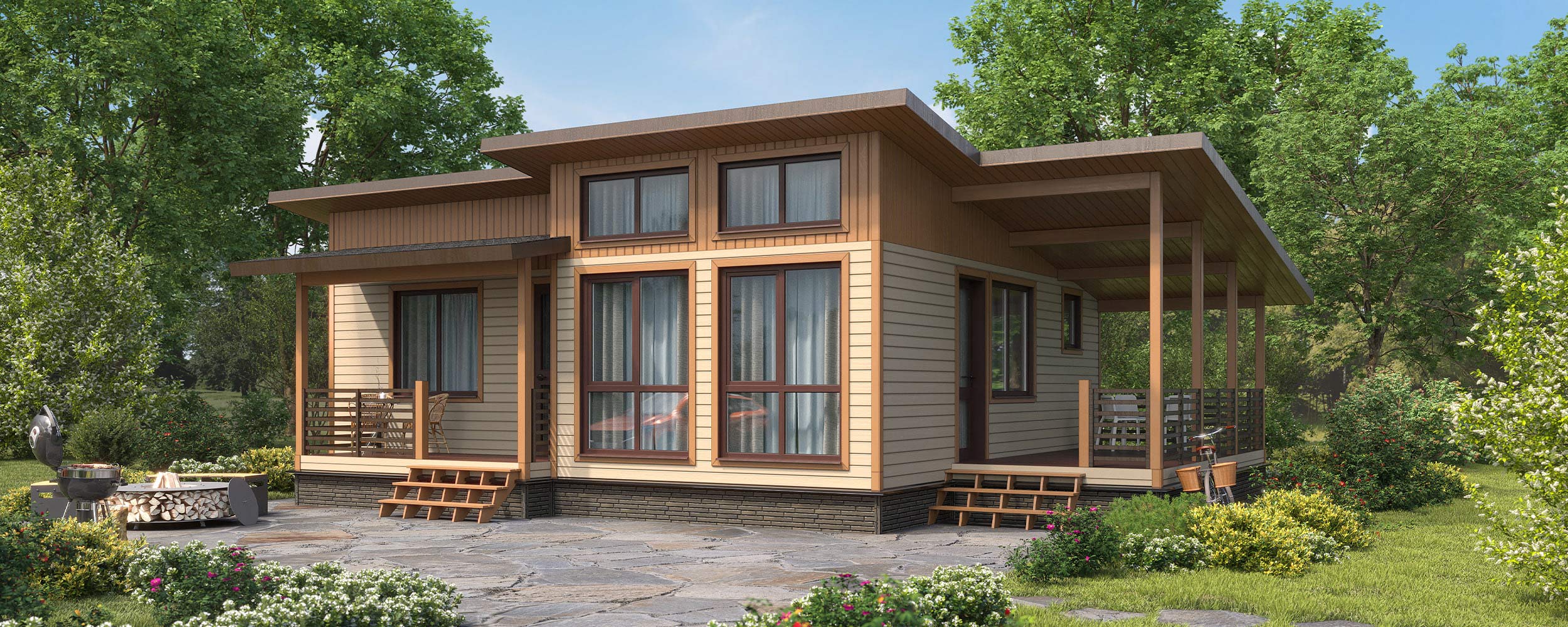 Прочный, тёплый и комфортный дом для постоянного проживания на свайном фундаменте.